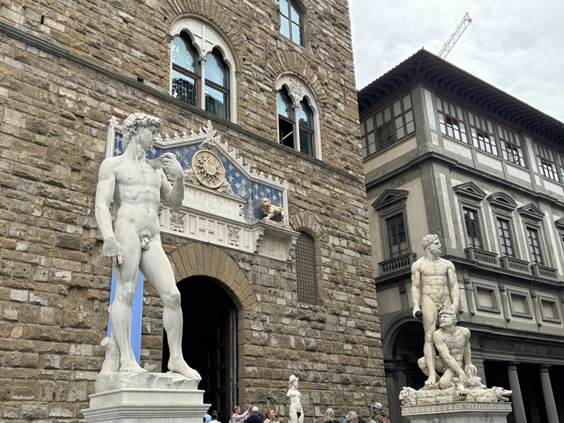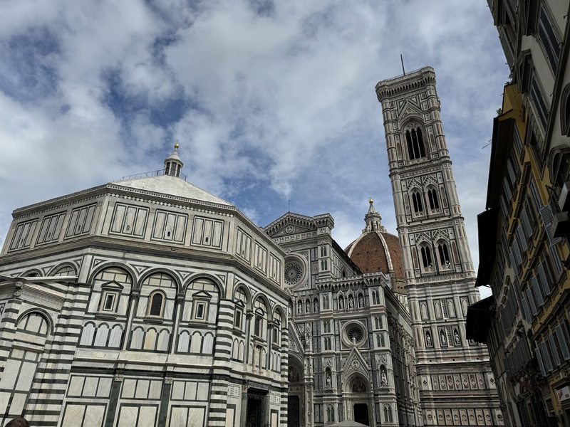 Gut, dass wir gestern noch zwei Online-Tickets für den Dom, inklusive der Kuppel und des Museums ergattert hatten, denn die Stadt quoll über vor Touristen. Hunderte Meter lange Schlangen vor den Sehenswürdigkeiten, Riesengedränge überall. Wir konnten mit unseren Tickets glücklicherweise einen Großteil der Massen hinter uns lassen und kamen ohne Anstehen in den berühmten Duomo hinein.