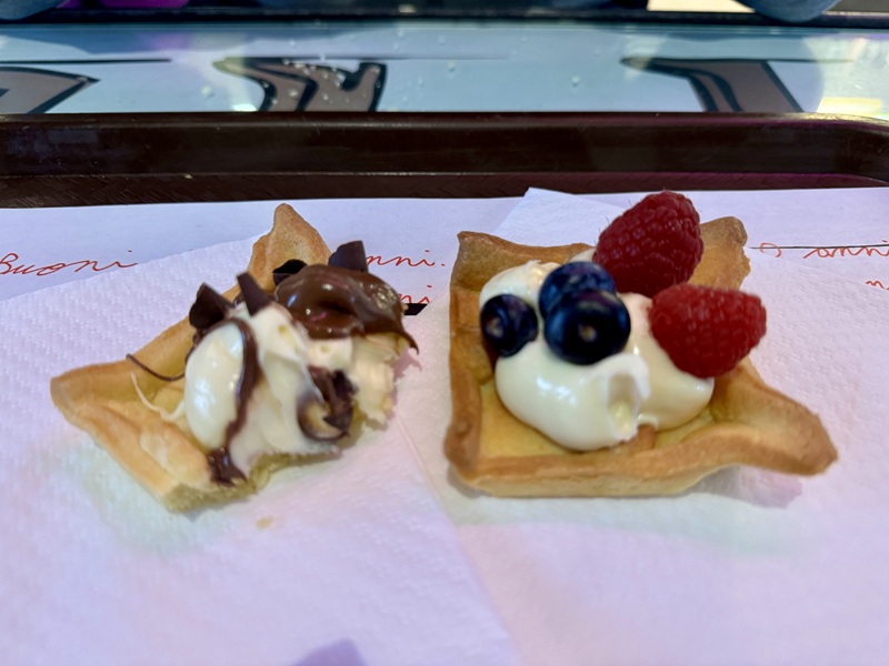 Glücklicherweise fanden wir einen Weg, all die abgelaufenen Kalorien wieder zuzulegen. In dem zentral gelegenen „Mercato centrale“ gibt es Streetfood-Stände aller Art – da haben wir zugeschlagen. Nicht, dass wir hier noch ein Gramm abnehmen.🤪