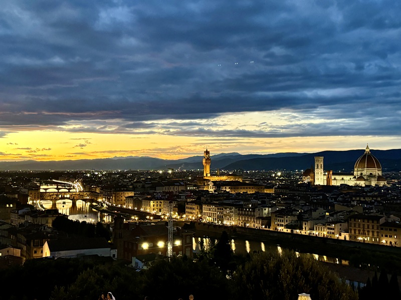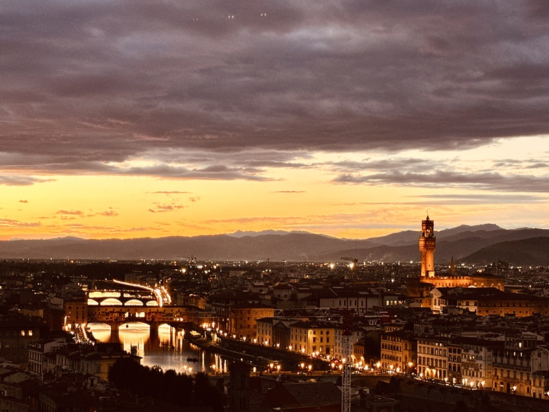 Nach dem Essen mussten wir uns wieder ein wenig sputen, denn wir wollten den Sonnenuntergang vom Piazzale Michelangelo nicht verpassen. Wir erreichten den oberhalb von Florenz gelegenen Aussichtspunkt nach einem schweißtreibenden Aufstieg von 20 Minuten gerade noch rechtzeitig, um gemeinsam mit hunderten anderen einen der besten Blicke auf Florenz zu teilen. Auch das war spektakulär und absolut empfehlenswert.